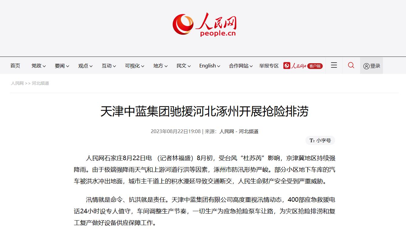 转载人民网,驰援河北涿州开展抢险排涝人民网石家庄8月22日电 (记者林福盛)8月初,受台风“杜苏芮”影响,京津冀地区持续强降雨。由于极端强降雨天气和上游河道行洪等因素,涿州市防汛形势严峻。部分小区地下车库的汽车被洪水冲出地面,城市主干道上的积水漫延导致交通断交,人民生命财产安全受到严重威胁。 截取20字 人民网石家庄8月22日电 (记者林福盛)...... <2023-08-25 11:32:08 自定义时间:2023-08-25 -