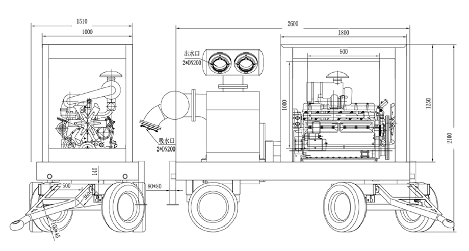 应急移动式柴油排水泵 自吸排水泵车:由自吸泵、发动机、拖车牵引,具备运输移动便捷、操作智能、运行稳定、管件快速拆装等功能和特点,满足复杂条件下防汛抗旱抢险排涝使用需要。
