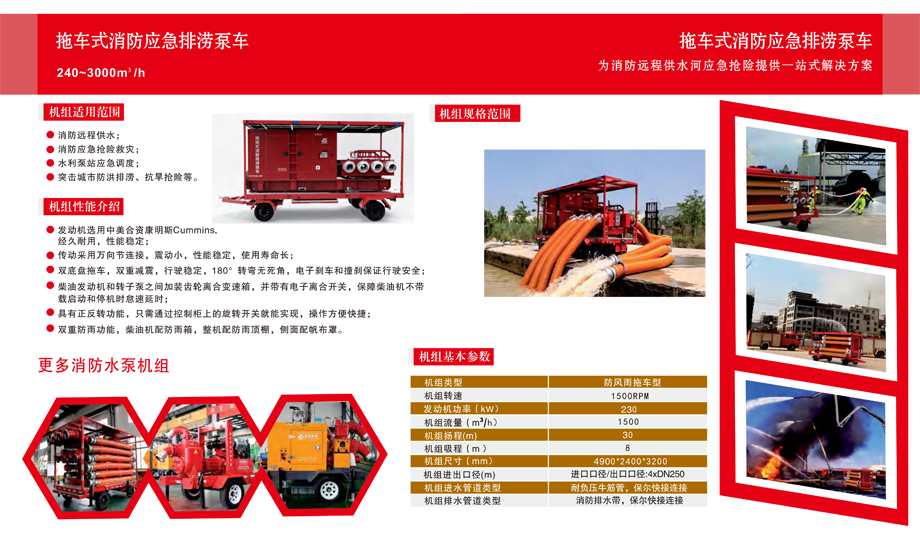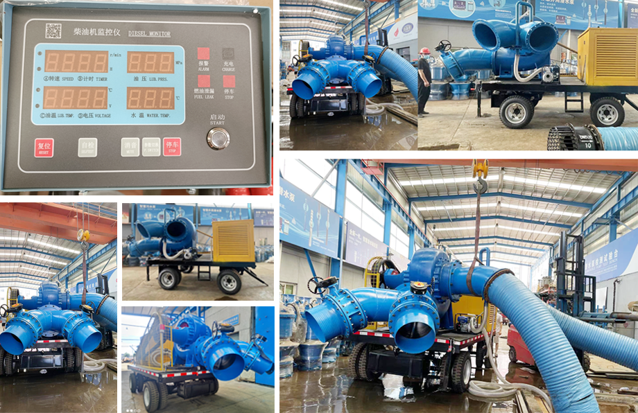 自吸式移动排涝抢险泵车,配备柴油机,汽油机、电机等;大流量排涝防汛,流量大,操作简单,快速出水,安装移动方便等特点,不怕雨水,全自动,无需灌水,装底阀等繁琐的工作。移动泵车应用于城市内涝,防汛抗洪、铁路桥洞,城市地道积水;需要远程排水大流量300-5000方柴油移动泵车;有自保控制系统和真空上水系统,使机组效率大大提高。