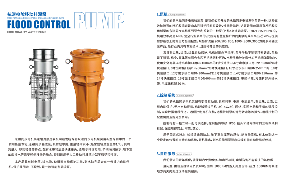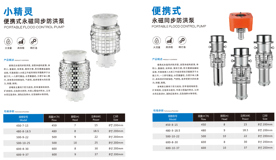 HT系列便携式永磁变频潜水泵是在防洪抢险泵的基础上研制而成,该泵不仅能充分发挥防洪抢险泵机动灵活性,在水泵的移动性能上更是有了重大的突破,缩小了水泵的体积、降低了水泵的重量,依靠人力就能移动水泵至指定地点展开作业。该水泵在结构上更加紧凑,便于维修,可以潜入各种水环境中运行而不必担心堵塞。