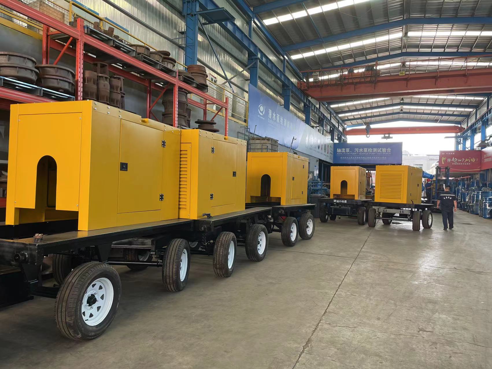 7、紧急供水泵站,泵内部过流部件都可配备不锈钢,数台泵车串联使用可作为临时供水泵站;